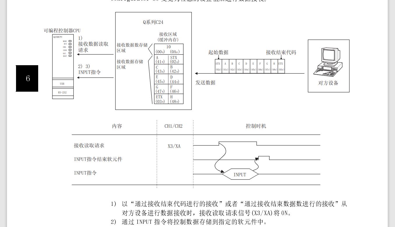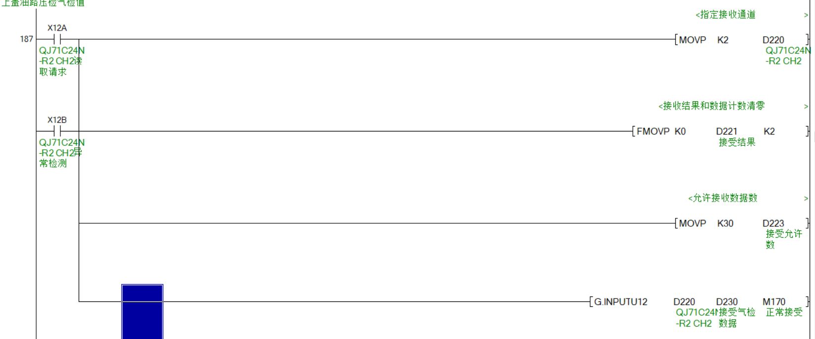 關鍵點在于結束符或者是接收數據計數的設置,詳細可查看《Q系列串行口通信模塊基礎篇》串口模塊的緩存存儲器G164和G165這兩個地址