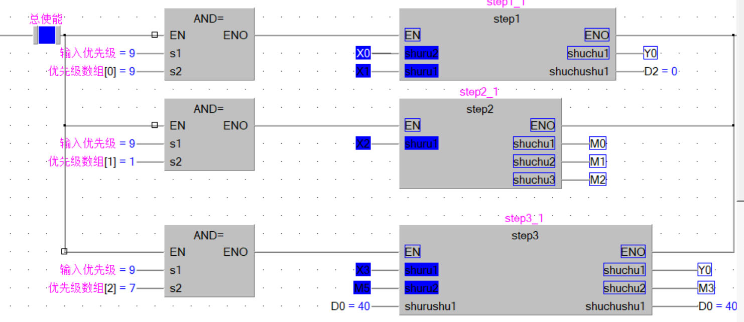 1 用D0 D1 D2 D3 D4存放FB塊的優(yōu)先級,數(shù)字小的先執(zhí)行,大的后執(zhí)行。排序后將D對應(yīng)的序號,放在一個數(shù)組中,如果D0=7 D1=6 D2=11 D3=9 D4=0,排序后的數(shù)組就是:4,1,0,3,2