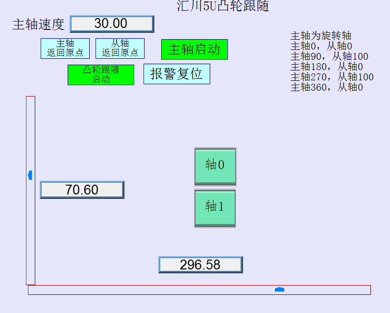 1度,可以生成一個(gè)對(duì)應(yīng)的Y,這樣用FOR循環(huán)的指令可以自動(dòng)生成360個(gè)對(duì)應(yīng)的Y,形成了360個(gè)凸輪表數(shù)據(jù)。凸輪行程量可以設(shè)為