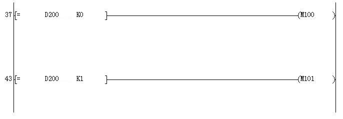 圖4D200=0時(shí)M100接通,D200=1時(shí)MI01接通。