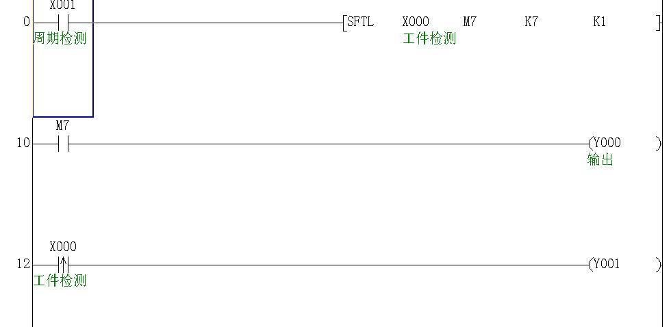 工件一個(gè)一個(gè)過(guò)來(lái),經(jīng)過(guò)接近開(kāi)關(guān)(X0)作判斷     ,接通了說(shuō)明是好料,沒(méi)有通的是壞料,并且在8位上有一個(gè)(Yo)氣頂將壞料頂出軌道,好的料繼續(xù)向前.